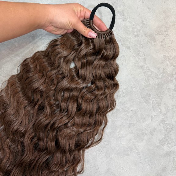 دم اسبی کشی فر خرمایی روشن با کد ۸ و قد ۹۰ سانتی‌متر، انتخابی عالی برای کسانی است که به دنبال موهای فر با رنگ گرم و طبیعی هستند.