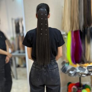 دم اسبی کشی مرواریدی قد۶۰ مشکی طبیعی